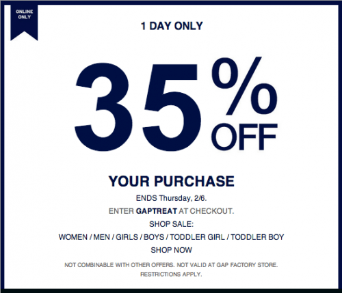 Gap Canada 1 Day Offer: Save 35% On Your Purchase | Canadian Freebies, Coupons, Deals, Bargains ...