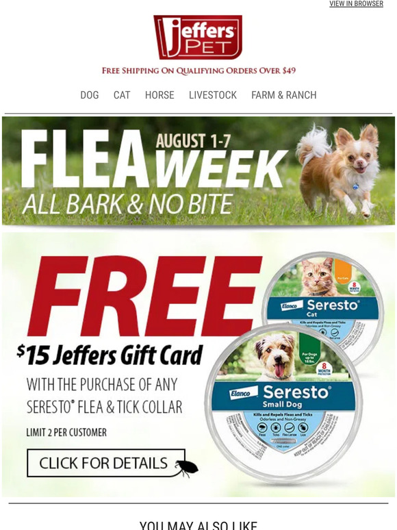 Jeffers Pet Coupons - Save 20% | Sep 2022 Coupon & Promo Codes 10% Off Your Entire Purchase, With This Jeffers Pet Coupon Code Receive 10% discount on your entire purchase. M GET PROMO CODE More details Expired over one year ago 10% OFF 10% off your purchase Purchase online with us and get savings of 10%. E GET PROMO CODE More details Expired over one year ago 15% OFF Get 15% off your order