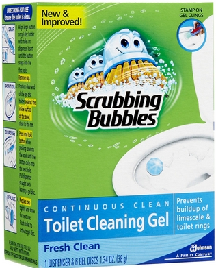 › Scrubbing-Bubbles-Toilet-CleanerScrubbing Bubbles Toilet Bowl Cleaner and Power Stain ... 24oz of Bubbly Bleach Gel Toilet Bowl Cleaner : 24oz of Extra Power Toilet Bowl Cleaner : 1 applicator + 6 gel stamps (1 tube) 3 discs : Related Products : 10 count flushable refill pack, 20 count flushable refill pack, 8 count Heavy Duty Refill pack : Fresh Brush Toilet Cleaning System Starter Kit