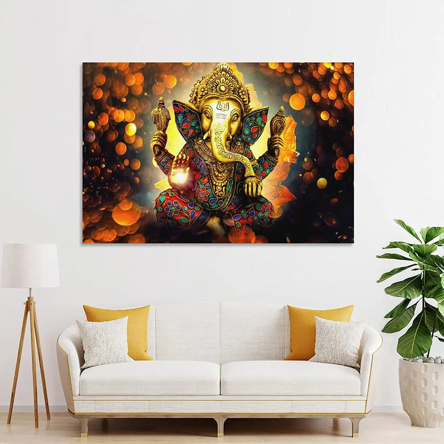 Buddha Poster Vinayaka Ganapati Lord Ganesha Statue Wall Art Canvas Picture for Living Room Home Decor Golden Elephant No Frame
